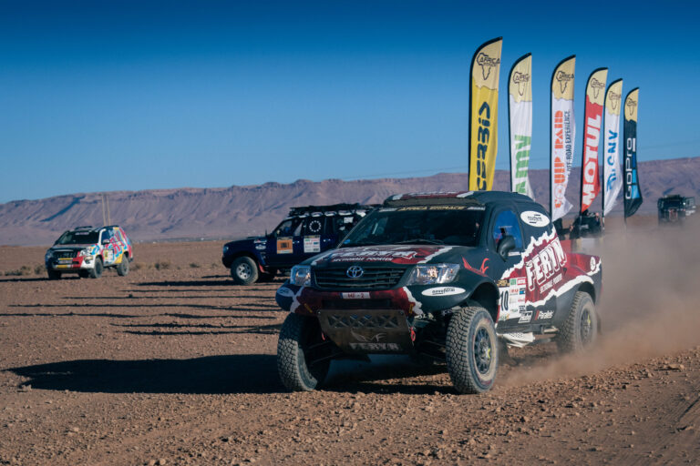 Team Feryn Dakar Sport is woensdagavond veilig en wel aangekomen in het bivak van Mhamid. Om daar te geraken legden ze een tocht van 425 km af, waarvan 383 km tegen de tijd. Het gevarieerd parcours bestond uit duinen, keien en bevatte een uitdagend waypoint waar velen zich de tanden op stuk beten. Ook onze teamleden. In de stand wipt Pascal Feryn (Toyota Hilux) over Koen Wauters (Toyota Hilux) naar de leiding bij de wagens. In de stand zijn ze zesde en zevende. Tom De Leeuw, Cedric Feryn en Bjorn Burgelman (Ginaf) zijn twaalfde na twee etappes.
